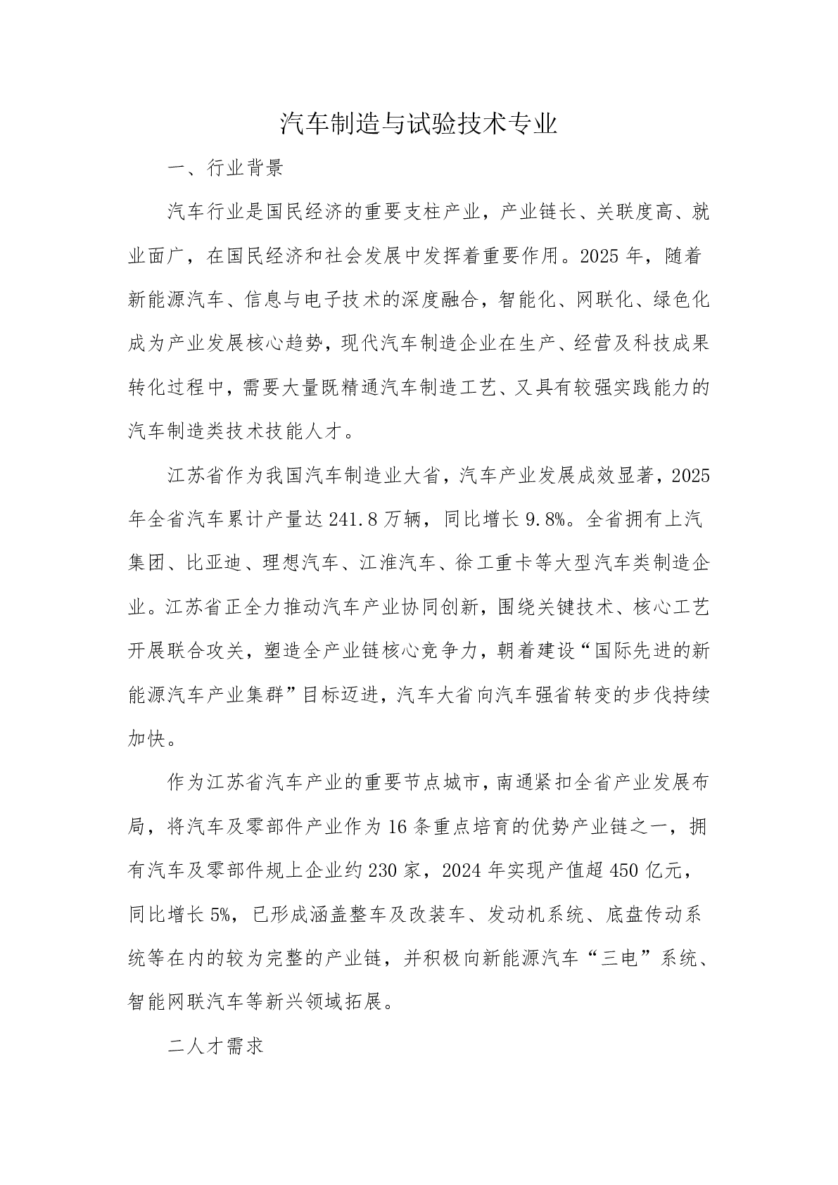 汽车制造与试验技术(3+2专本衔接)