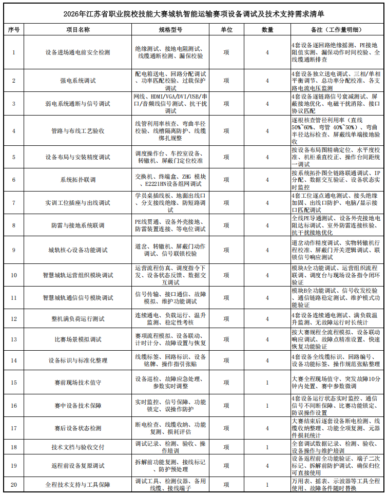一.项目名称:2026年江苏省职业院校技能大赛城轨智能运输赛项设备调试及技术支持项目